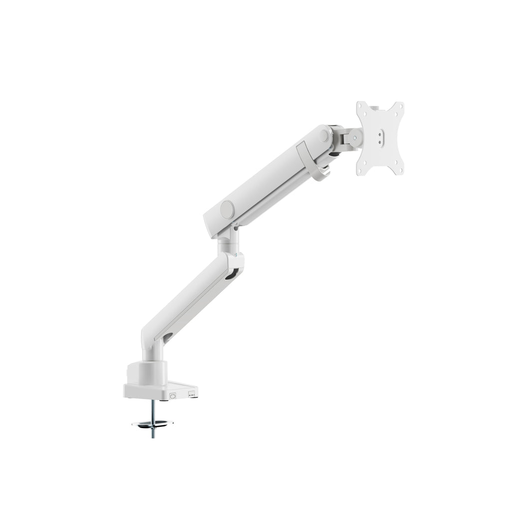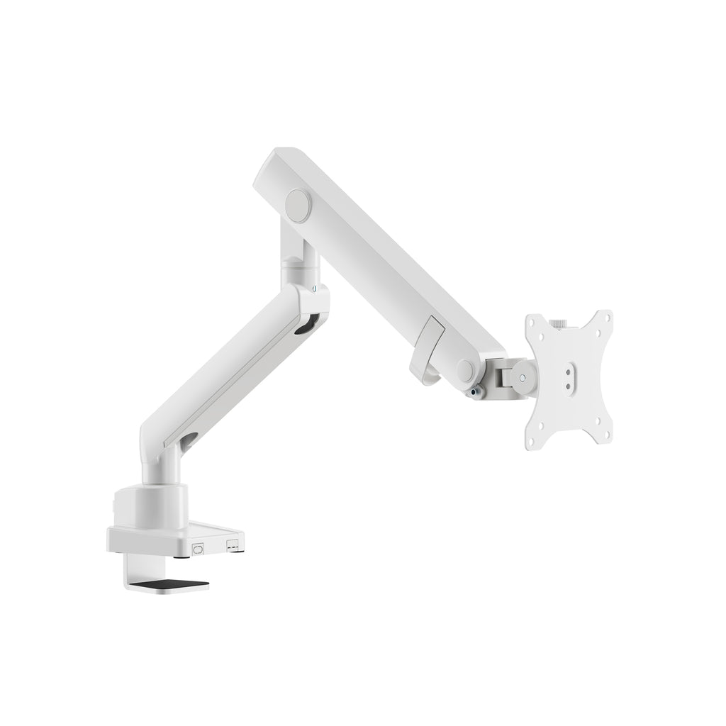 Amer Mount’s HYDRA1B-W (v2) White Single Monitor Mount with Articulating Arm comes with Top Fix fitting, which means this type of arm is perfect for limited space underside of the desktop. Its optimizing elbow spring gauge offers the performance and quality needed for weight adjustment. Quick-release VESA plate and detachable joints make it an ideal support for longer life and easy installation.